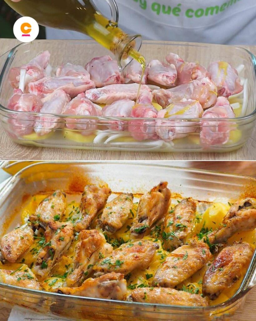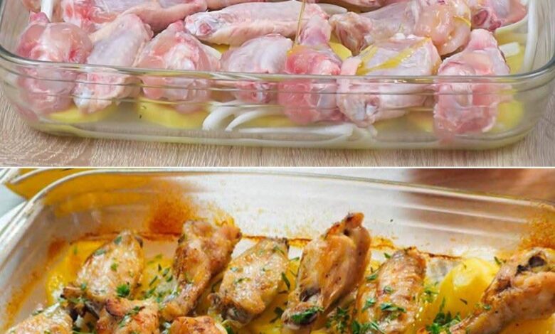 Baked chicken wings with potatoes is a classic comfort food that combines crispy golden wings with soft, flavorful potatoes β all roasted together in olive oil, garlic, and herbs.