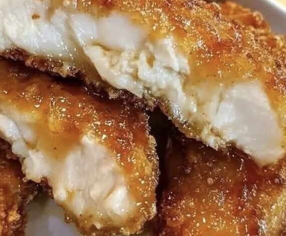 Dip each chicken tender into the honey butter mixture, ensuring it’s fully coated.