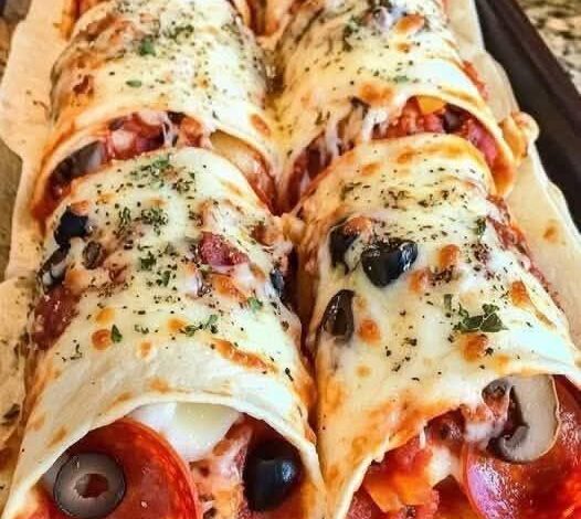 Let cool for a few minutes before slicing. Serve hot with additional pizza sauce for dipping if desired. These baked pizza wraps offer a fun and portable twist on traditional pizza, perfect for quick meals or party snacks.