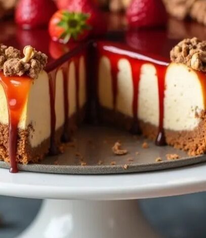 A cool, creamy, no-bake dessert bursting with fresh strawberries, smooth cream cheese, and a buttery graham crust — finished with a sweet caramel drizzle. Perfect for warm days or easy entertaining!