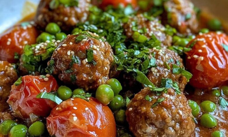 Boulettes de bœuf mijotées aux petits pois et aux tomates