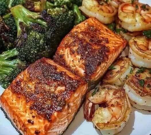 Cajun Salmon & Garlic Butter Shrimp with Roasted Broccoli 🥦