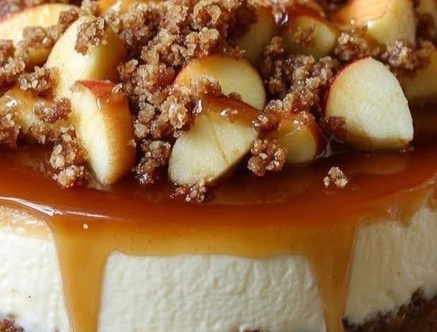 1. Preheat oven to 175°C (350°F). Mix graham cracker crumbs, melted butter, and sugar, then press into the bottom of a springform pan. Bake for 8 minutes and let cool. 2. Beat cream cheese, sugar, eggs, and vanilla until smooth. Pour over the crust and bake for 30-35 minutes or until set. Cool completely. 3. Top with diced apples, caramel sauce, and crumble topping. Chill for at least 2 hours before serving.