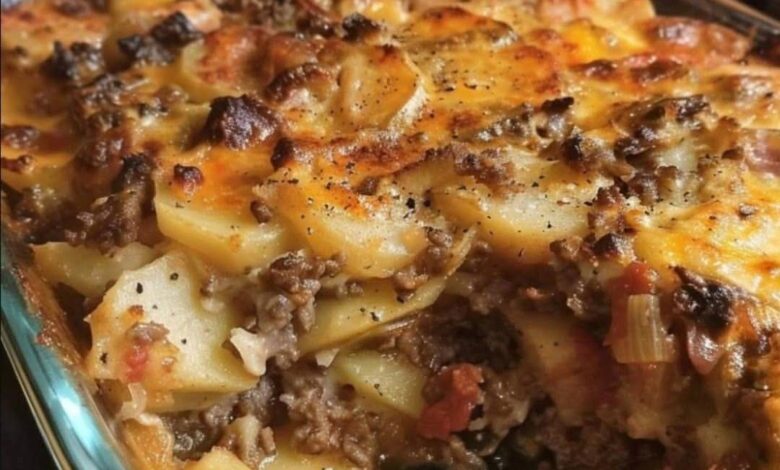 With layers of thinly sliced potatoes, seasoned ground beef, and a creamy, cheesy sauce, this dish delivers rich flavors and a satisfying texture in every bite. Whether you’re cooking for a crowd or just for your family, this casserole is sure to be a favorite.