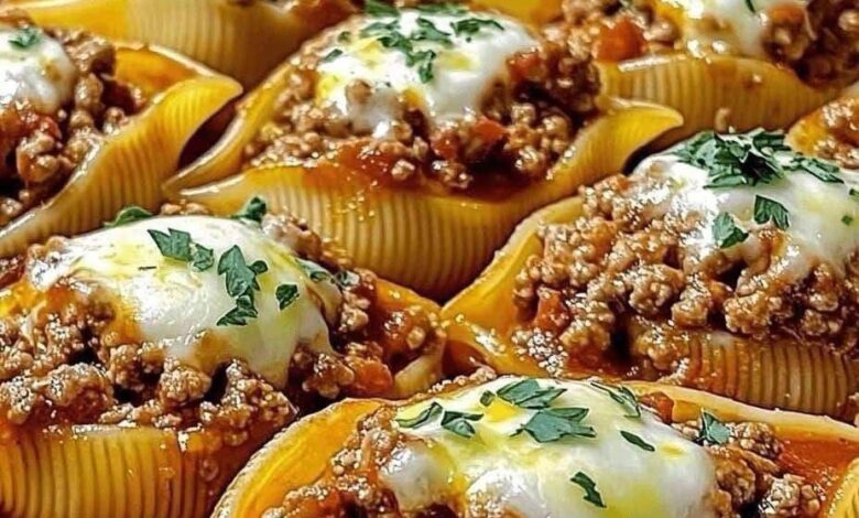 Get ready to fall in love with this classic Italian-inspired comfort dish — Cheesy Stuffed Pasta Shells with Meat Sauce! Each large pasta shell is filled with a hearty, flavorful mixture of seasoned ground meat and rich tomato sauce, topped with creamy melted cheese. It’s a dish that tastes like home — warm, cozy, and satisfying. Perfect for family dinners, potlucks, or when you’re craving something comforting and cheesy.