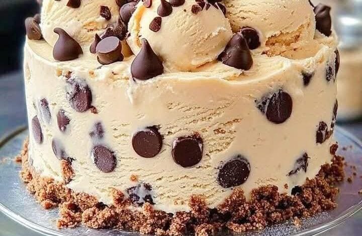 CHOCOLATE CHIP COOKIE DOUGH ICE CREAM CAKE—written cleanly without gaps or spacing: