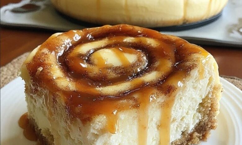 Caramel Cinnamon Roll Cheesecake: Drizzle caramel sauce over the cheesecake before serving for an extra layer of sweetness.