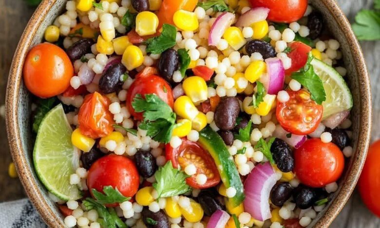 Add the cooled couscous and chopped cilantro to the veggie mixture. Pour the dressing over the salad and toss gently to combine.