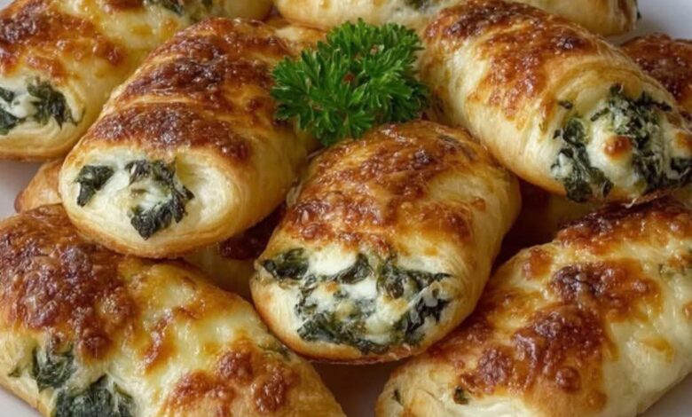 Cut puff pastry into squares. Spoon a small amount of the spinach mixture onto the center of each square.