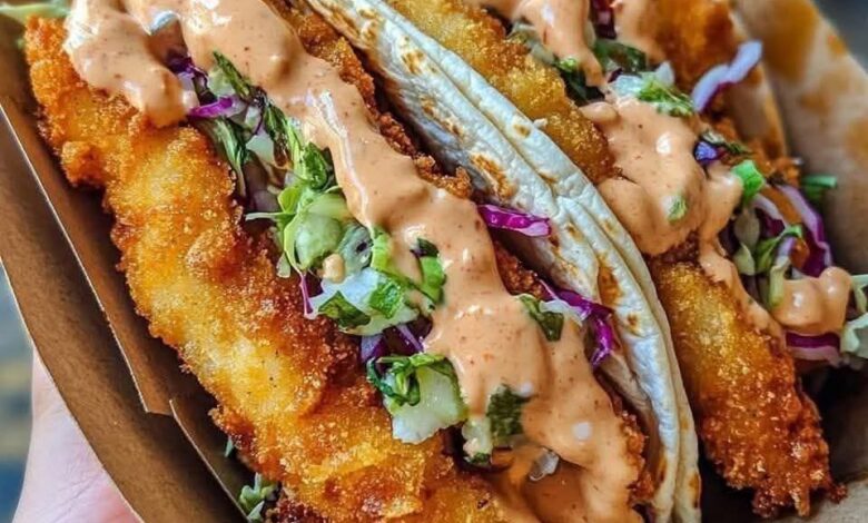 These Crispy Fish Tacos are bursting with flavor, featuring crispy battered fish topped with a smoky chipotle sauce, all wrapped in a soft taco shell. With a creamy slaw and a touch of lime, this dish is the perfect combination of crispy, spicy, and refreshing. Itโs a must-try for taco lovers! ๐ฎ๐ฅ๐