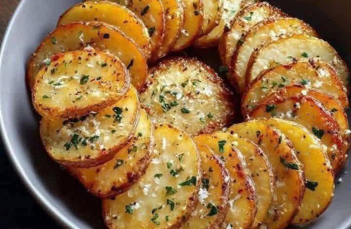 These thinly sliced potatoes are crispy on the outside, tender inside, and bursting with buttery garlic flavor. Perfect as a side dish for any meal or even as a snack!
