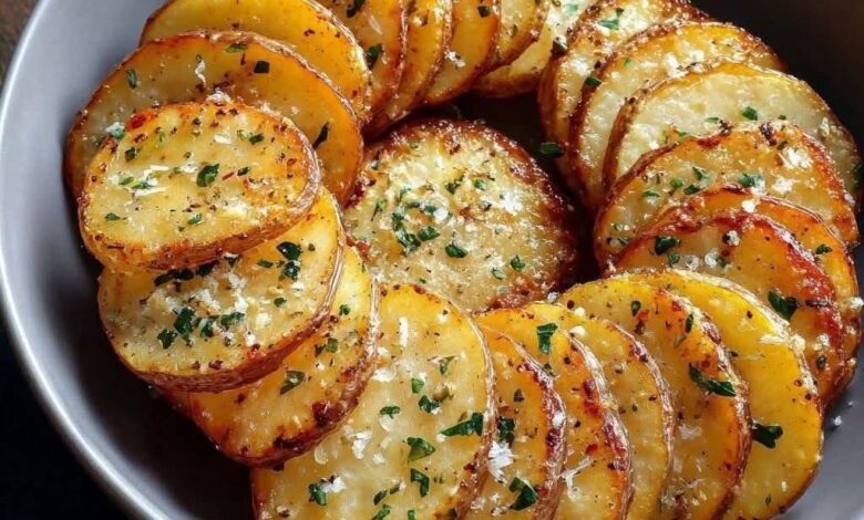 These golden, crispy roasted potato slices are tender on the inside, crunchy on the outside, and bursting with garlic, parmesan, and fresh herb flavor. They’re an irresistible side dish that pairs beautifully with meats, fish, or even as a snack on their own.