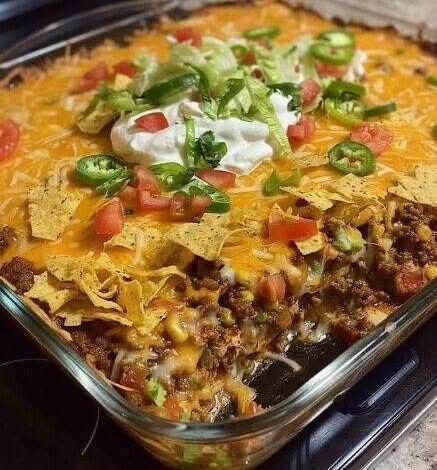 If you love tacos but don’t want to deal with assembling each one, this Taco Casserole is the ultimate solution. It has all the delicious layers of a taco night—seasoned beef, beans, corn, gooey cheese, crunchy tortilla chips, and fresh toppings—baked together into one hearty dish. Perfect for family dinners, parties, or meal prep, this casserole is a crowd-pleaser that combines comfort and bold Tex-Mex flavors.