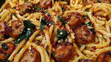 Sticky Honey Garlic Sausage Pasta Skillet 🍯🍝