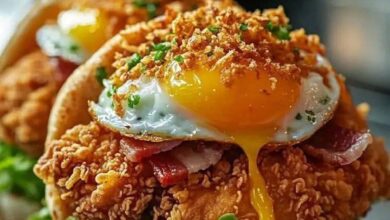 Fried Chicken Chalupa with Bacon & Egg 🍳🍗 Ingredients: For the Chalupa: 2 fried chicken tenders 🍗 4 soft flour…