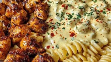 ARLIC BUTTER CHICKEN BITES & SPICY CAJUN ALFREDO TWISTED PASTA 🍗🌶️ 📋 Ingredients: For the Chicken Bites: 1.5 lbs boneless,…