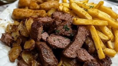 Grilled Steak and Sausage Platter with Fries Fire up your grill for this mouthwatering platter of juicy steak, savory sausage,…