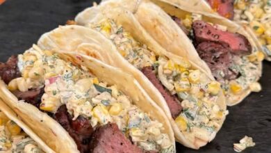 Grilled Elote Steak Tacos Ingredients 2 ribeyes Salt and pepper to taste 4 ears of corn husked 2 tablespoons mayonnaise…