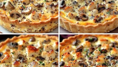 Quiche Poulet-Champignons Ingrédients: 230 g de pâte brisée prête à l’emploi 150 g de blanc de poulet cuit, coupé en…