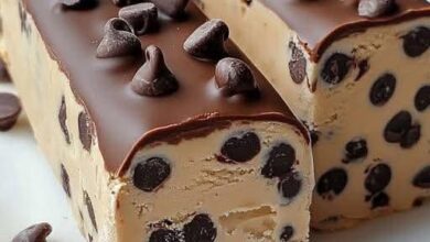 Barres de pâte à biscuits aux pépites de chocolat sans cuisson Ingrédients : Pour la pâte à biscuits : –…