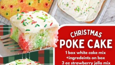 CHRISTMAS POKE CAKEA festive, colorful, soft and moist holiday dessert made by baking a tender white cake, filling it with…