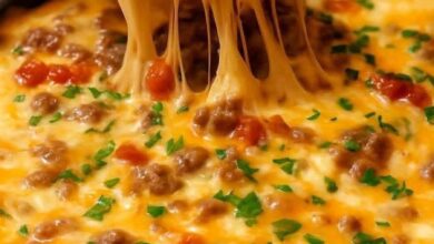 Bacon Cheeseburger Queso Dip Ingredients: 1 lb ground beef Β½ lb cooked bacon, crumbled 1 cup shredded cheddar cheese 1…
