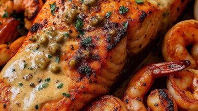 Cajun Salmon & Shrimp in Creamy Garlic Herb Sauce – Bold, Buttery, and Absolutely