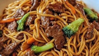 La MEILLEURE recette de bœuf Lo Mein Ingrédients : 8 oz lo mein nouilles (cuites selon les instructions) 1 cuillère…