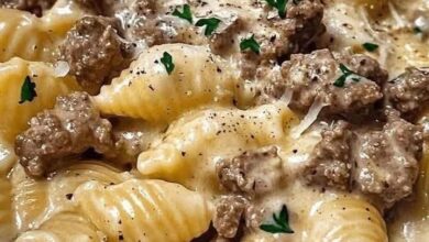 Creamy Beef and Shells in Garlic Parmesan Sauce Ingredients:🤩😃🤩😃😊😋😊😊 1 cup grated Parmesan cheese 12 ounces rotini pasta 1 pound…