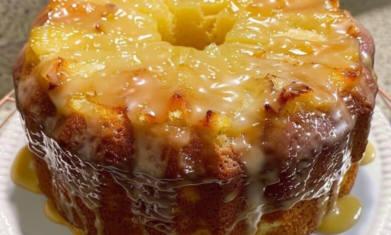 The Pineapple Upside-Down Cake is one of those iconic desserts that never goes out of style. Sweet, tangy pineapple with caramelized glaze on top of a moist, buttery cake creates pure nostalgia. Traditionally baked in a round pan, this version uses a Bundt pan, making it extra beautiful and perfect for gatherings. The glossy pineapple rings and drizzle of glaze make it not only delicious but also a showstopper centerpiece.