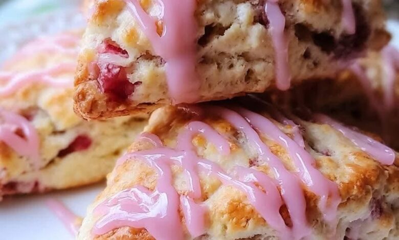 Rhubarb Scones with Sweet Vanilla Glaze