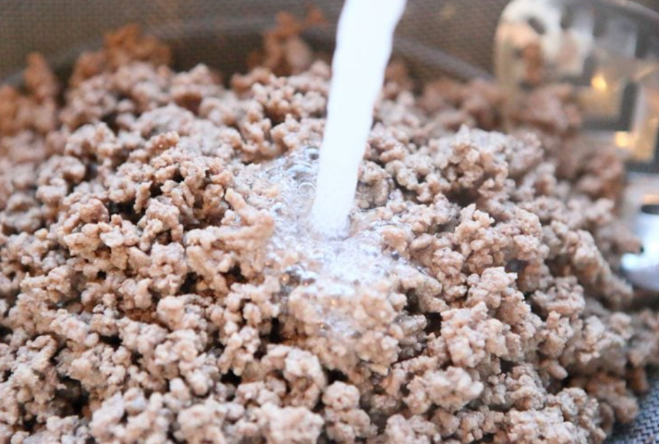 Health-conscious cooks may rinse beef after browning to remove extra grease. This does work—but at the cost of flavor.