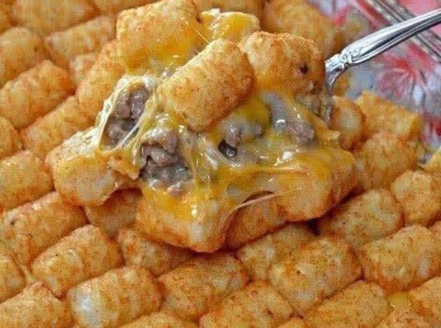 7. Bake in your preheated oven for 30 to 35 minutes, or until the tater tots are golden brown and everything is bubbly and delicious.